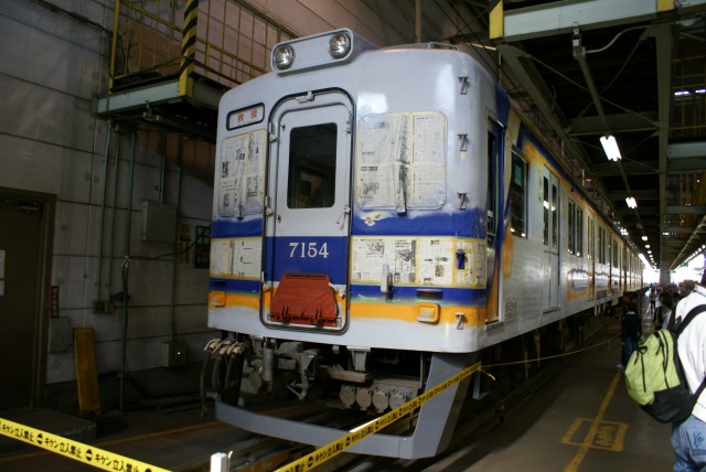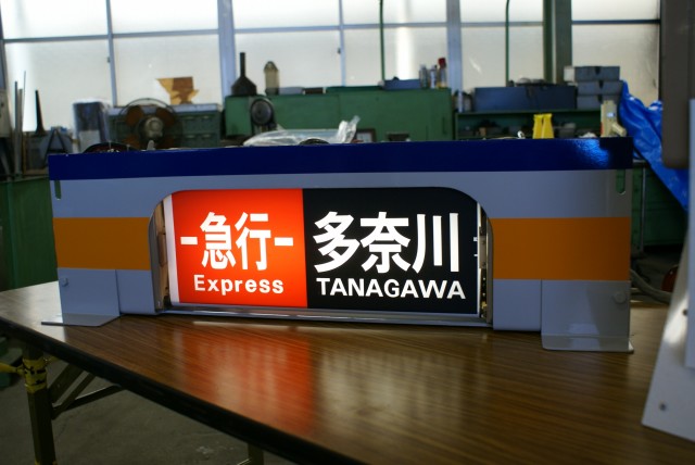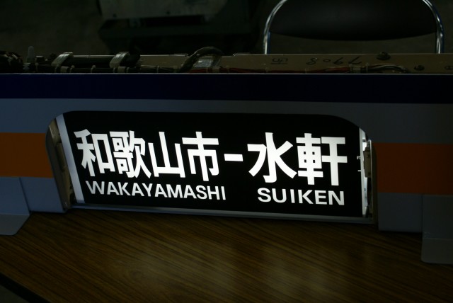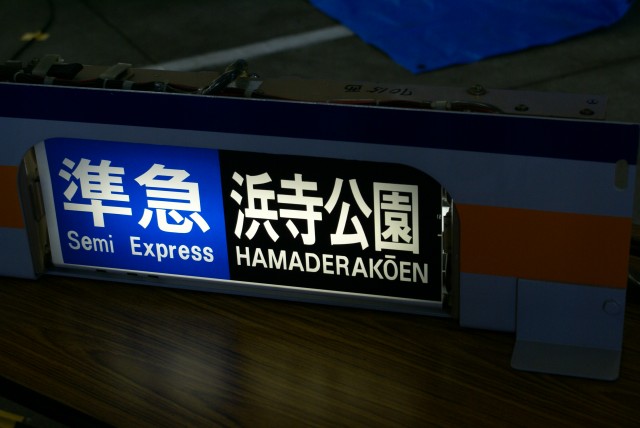 | 今年から、細かな展示の充実が図られた南海千代田工場。 廃車になった7000系を利用した方向幕操作体験。 まずは-急行-多奈川。 |