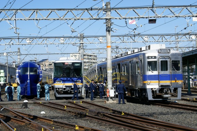 | 突如、公開されることになった8000系。南海の粋な計らいに感謝。 車体は東急標準(東日本クオリティ)を使用したため、前評判は悪い模様。 |